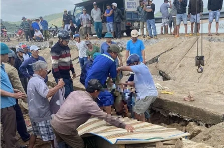 (TTVN)Bốn người đi trồng cây keo con vào trú mưa dưới bờ kè sông Ba thuộc tỉnh Phú Yên cũ, nay là tỉnh Đắk Lắk. Bờ kè bê tông sập đổ, đè chết cả 4 người.