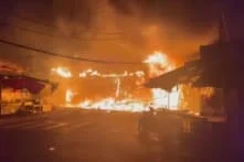 (TTVN)Ngọn lửa xuất hiện từ khoảng 1h30 ngày 26/1 đã thiêu rụi dãy nhà trong khu chợ Nhị Thiên Đường, phường Bình Đông, TP.HCM, lực lượng chức năng đang điều tra nguyên nhân.