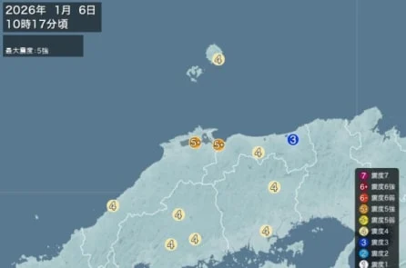 (TTVN)Sáng thứ Ba (6/1), một trận động đất mạnh đã xảy ra tại miền Tây Nhật Bản. Theo Cơ quan Khí tượng Nhật Bản, vào khoảng 10:18 (theo giờ địa phương), một trận động đất mạnh 6,4 độ Richter đã xảy ra tại khu vực phía đông tỉnh Shimane, với độ sâu chấn tiêu khoảng 11 km (tức điểm bắt nguồn của trận động đất). Ngay sau đó, cơ quan này đã phát đi cảnh báo động đất khẩn cấp và xác nhận trận động đất không gây ra sóng thần.