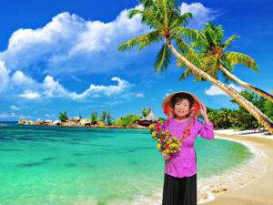 Gió lên từng chiều vàng nàng xõa tóc trên biển xanh