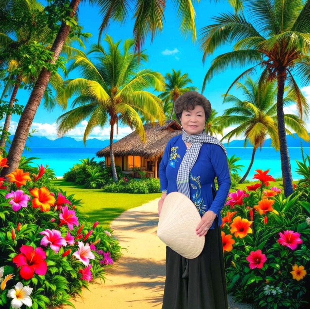 Hoa tươi ngỡ môi em cười, vui đón chào khách từ ngàn phương