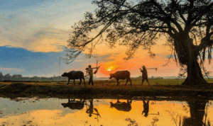 Đẹp tựa trong tranh, gót bùn lầy cho lúa thêm xanh