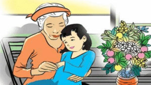 Bé Ngọc vừa nói vừa đảo mắt nhìn nội. Bà tằng hắng mấy tiếng rồi nói to:
