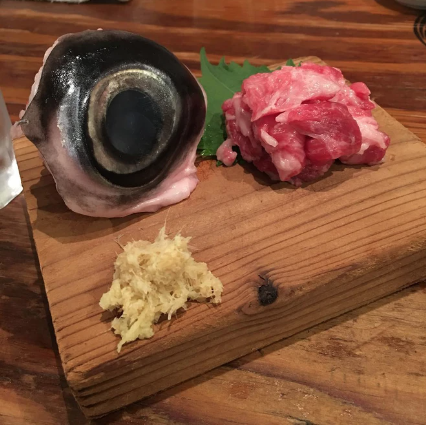 Đây là món đặc sản thường thấy trong nhiều quán nhậu, nhà hàng Nhật Bản. Mắt cá ngừ có kích thước lớn, khi chế biến thường được ninh, hấp hoặc luộc với nước tương. Dù hình thức khiến nhiều người ái ngại, nhưng đây lại là nguồn dinh dưỡng dồi dào với Omega 3 và DHA. Món ăn này cũng xuất hiện tại một số quán hải sản ở Việt Nam.