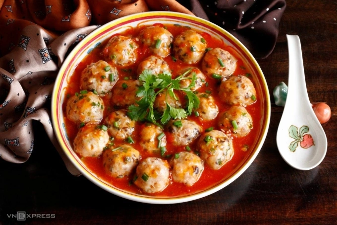 Thịt viên sốt cà chua hấp dẫn bởi mềm ẩm, giòn dai, béo ngậy xen kẽ mộc nhĩ giòn sần sật, nước sốt sánh nhẹ, vị vừa vặn. Món này ăn cùng cơm trắng hay bánh mì đều ngon.
