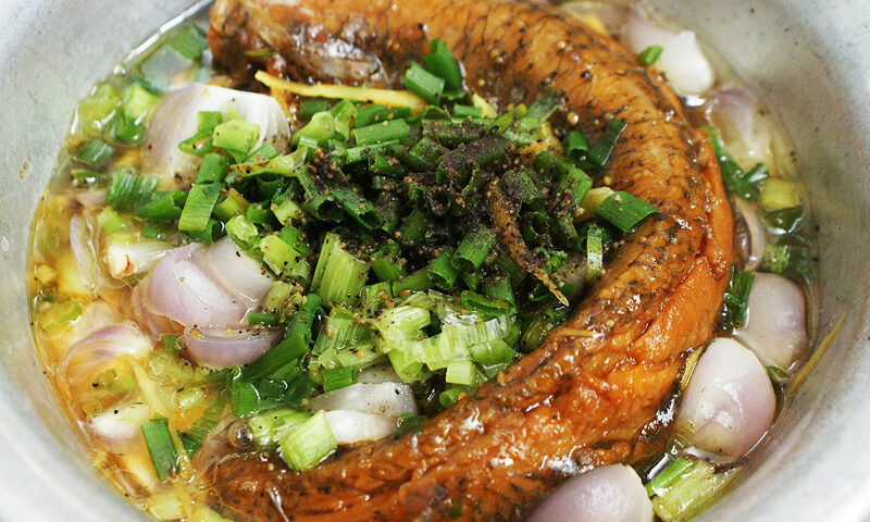 Mắm cá lóc chưng là món hấp dẫn kế tiếp. Món này tiết kiệm thời gian chế biến và ngon miệng khi ăn với cơm bởi vị mặn của mắm, vị cay nồng của gừng và mùi thơm của hành tím, hành lá, tiêu xay, thịt heo bằm. Chỉ cần hấp khoảng 15 phút là thành phẩm.