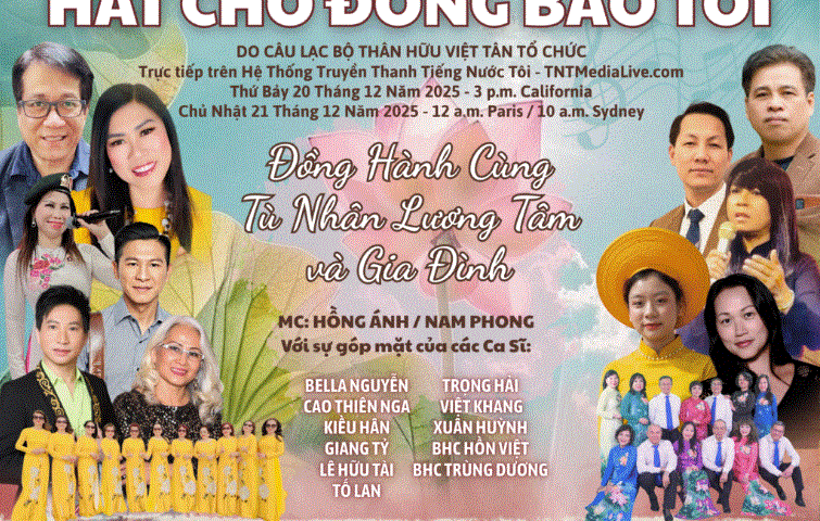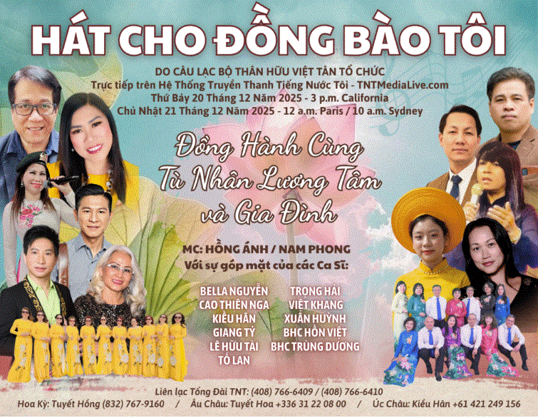 Văn Nghệ ” Hát Cho Đồng bào Tôi” TNTMedialive.com Ngày Thứ Bảy 20 tháng 12 Năm 2025- Lúc 3 giờ chiều – California December 9, 2025 TNT SD Âm Nhạc, Quảng Cáo, Sinh Hoạt Cộng Đồng