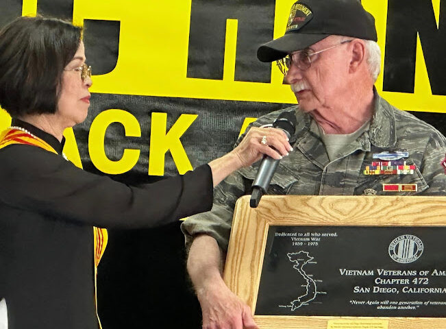 Các Cựu Chiến Binh Mỹ Trao Tấm Plaque tri ân Cộng Đồng Việt Nam San Diego trong việc đóng góp xây dựng Bia Tưởng Niệm Cựu Chiến Binh Mỹ hy sinh tại Việt Nam để bảo vệ tự do trong ngày 30/4/2023 tại San Diego