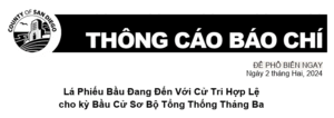 Bỏ phiếu sớm bắt đầu từ thứ Hai, ngày 5 tháng Hai tại Văn Phòng Bầu Cử vùng Kearny Mesa.