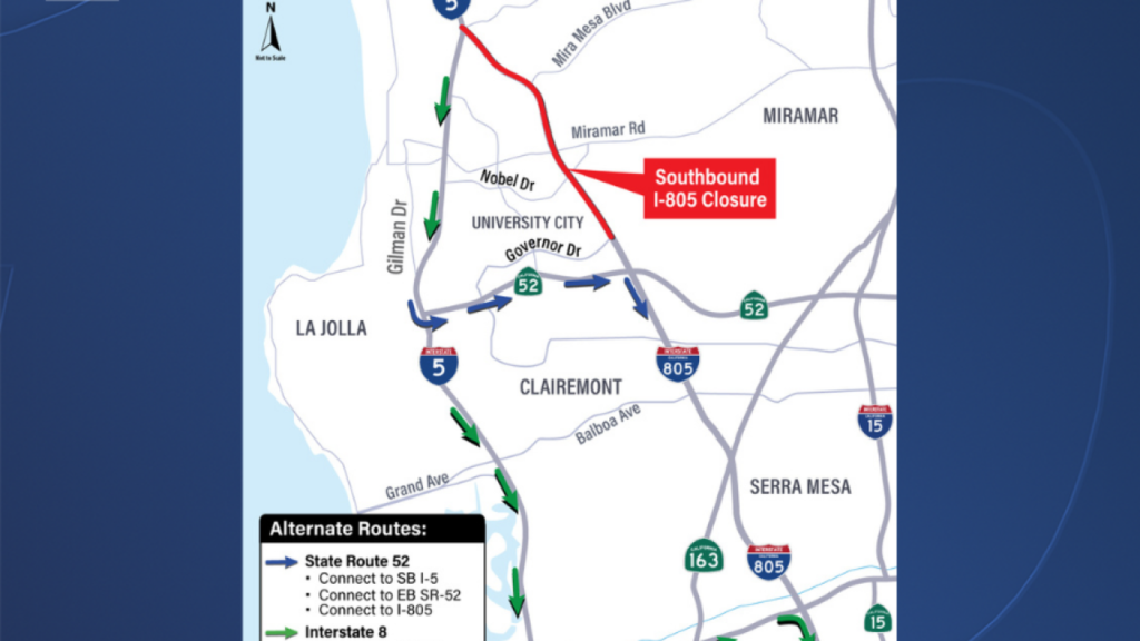 SAN DIEGO (CNS) – Một đoạn đường cao tốc Interstate 805 hướng về phía nam, kéo dài từ Sorrento Valley đến University City, sẽ bị đóng cửa bắt đầu từ tối thứ Sáu và kéo dài đến hết cuối tuần để phục vụ công tác xây dựng.Từ 9 giờ tối thứ Sáu đến 5 giờ sáng thứ Hai, tất cả các làn đường hướng nam sẽ bị đóng cửa từ đoạn giao với đường cao tốc liên tiểu bang 5/805 đến đường Governor Drive, trong khi dự án thay thế cống thoát nước được tiến hành bên dưới đường cao tốc ngay phía nam đường Nobel Drive.Các tài xế được khuyến cáo có thể sử dụng đường cao tốc liên tiểu bang 5 hướng nam để đi đến đường quốc lộ 52 hướng đông hoặc đường cao tốc liên tiểu bang 8 hướng đông để đến đường cao tốc liên tiểu bang 805 hướng nam ở phía bên kia khu vực bị đóng đường.